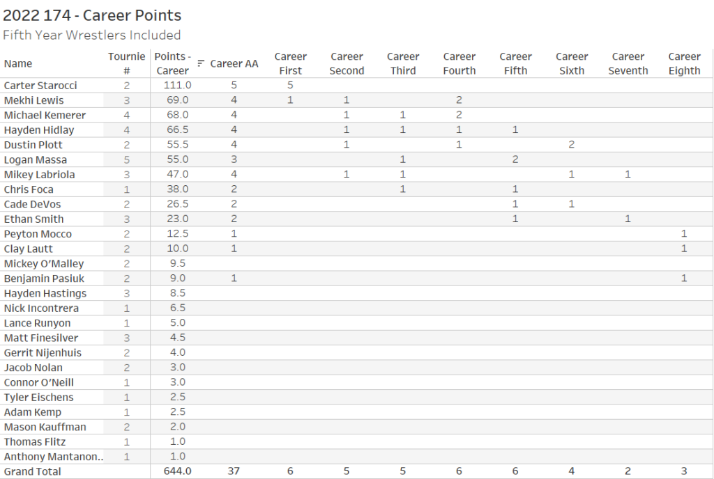 If we are giving out lifetime achievement awards (if that lifetime lasts until they are done wrestling NCAA tournaments) then the 2022 174 takes the cake.